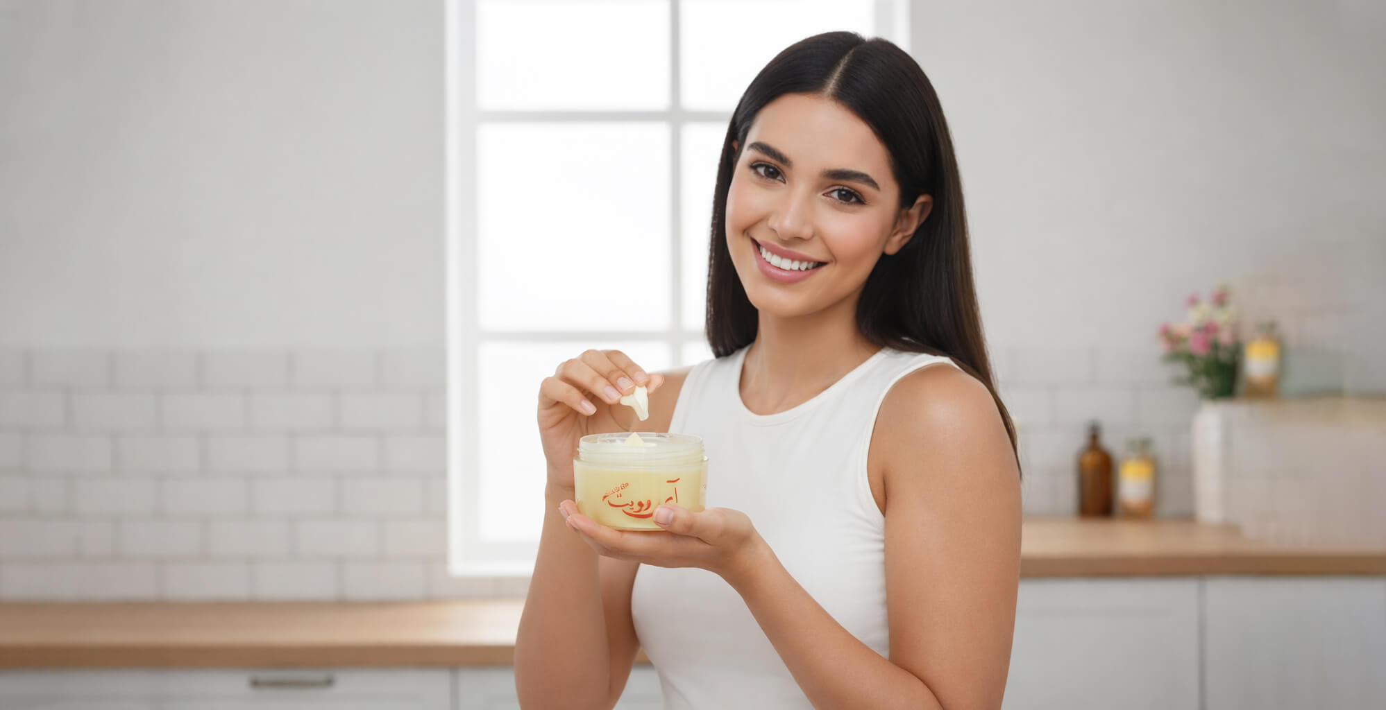 منتجات عناية بالبشرة مستوحاة من المكونات الطبيعية مثل العسل والزيوت المغذية لترطيب البشرة والحفاظ على نعومتها.